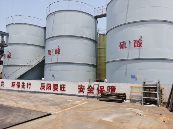 辰陽化工20190828日取得衢州市應急管理局核發的危險化學品經營許可證(有效期至20220827,證書編號:衢應急經(龍)字2019000010許可經營范圍:帶儲存經營鹽酸(液體儲量3000噸)、硫酸(液體儲量1550噸)、液堿(液體儲量900噸),共計3種;無倉儲經營氫氧化鈉、氨溶液[含氨>10%]、次氯酸鈉溶液[含有效氯>5%]12-二甲苯13-二甲苯14-二甲苯、二甲苯異構混合液、氟化氫[無水]、氫氟酸、環己酮、環己烷、三氯甲烷、四氯乙烯、1122-四氯乙烷11-二氯乙烯12-二氯乙烯、三氯乙醛[穩定的]、環氧樹脂、乙酸乙酯、甲醇、乙醇[無水]、涂料用稀釋劑、甲醛溶液、甲酸、乙酸[含量>80%]、乙酸溶液[10%<含量≤80%]、磷酸、碳酸鋰、氫氧化鋰、氯化鈣;易制爆:過氧化氫溶液[含量>8%]、硝酸、六亞甲基四胺,共計33種(其中碳酸鋰、氯化鈣為非危險化學品)經營儲存場所位于廠區北側,包括1座戊類罐區(1500m3液堿2500m3硫酸罐和6500m3鹽酸罐)、1座裝卸車臺及輔助車間1F(包裝間)