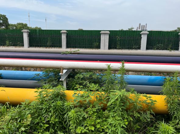 企業(yè)在2009年《浙江富士特硅材料有限公司5000噸/年白炭黑項(xiàng)目氫氣輸送》中實(shí)施的DN80氫氣管道起點(diǎn)為巨化集團(tuán)電化廠氫氣輸送裝置(氫氣壓縮機(jī)),終點(diǎn)為浙江富士特硅材料有限公司,管道沿線經(jīng)過巨化公司廠區(qū)內(nèi)的電化廠、巨化新聯(lián)公司、衢州市清泰環(huán)境工程有限公司等,以及衢州高新技術(shù)產(chǎn)業(yè)園區(qū)內(nèi)衢州市南高峰化工有限公司、浙江巨化漢正新材料有限公司、浙江中天氟硅材料有限公司等,管道全長約6200m。由于原設(shè)計(jì)管道管徑僅為DN80,管道內(nèi)氫氣流速較快,容易產(chǎn)生大量靜電,并且此室外管線長期運(yùn)行(已超過10年),產(chǎn)生腐蝕,管道壁厚變薄,給安全生產(chǎn)造成了一定的安全隱患。